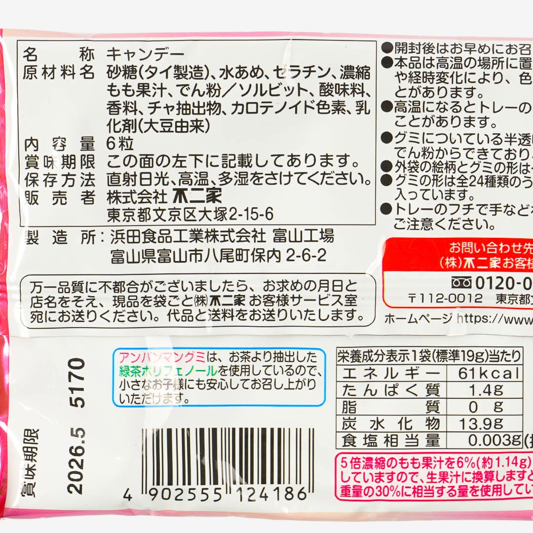 Nibble on this pack of yummy peach gummy candy! Not only does it feature prints of Anpanman characters, but the gummies are shaped like Anpanman cuties too. Surprise yourself with a random packaging design when you order.
