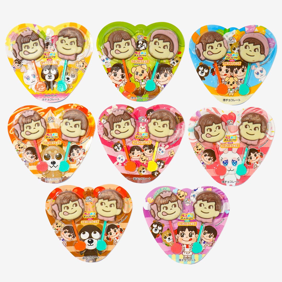 Enjoy these sweet chocolate lollipop treats that are shaped like Peko-chan and Poko-chan from Fujiya! You can enjoy it on your own or share it with your friend.