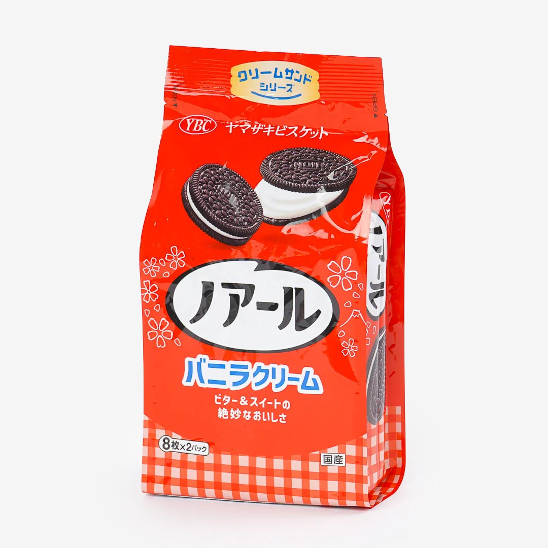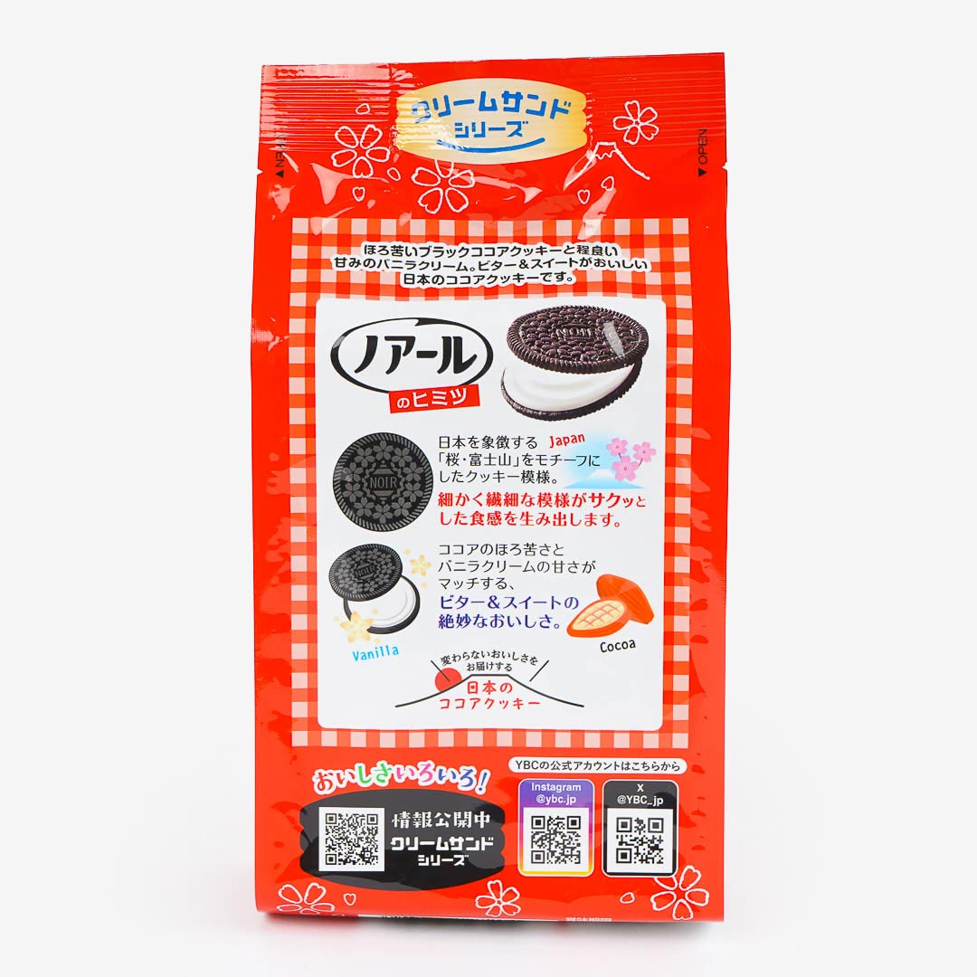 Indulge in these bittersweet sandwich cookies made of black cocoa! Each piece is generously filled at the center with sweet vanilla cream. You can share these treats with friends and family as they come in a special “stand pack” which is a pair of cookie bags containing nine pieces each.