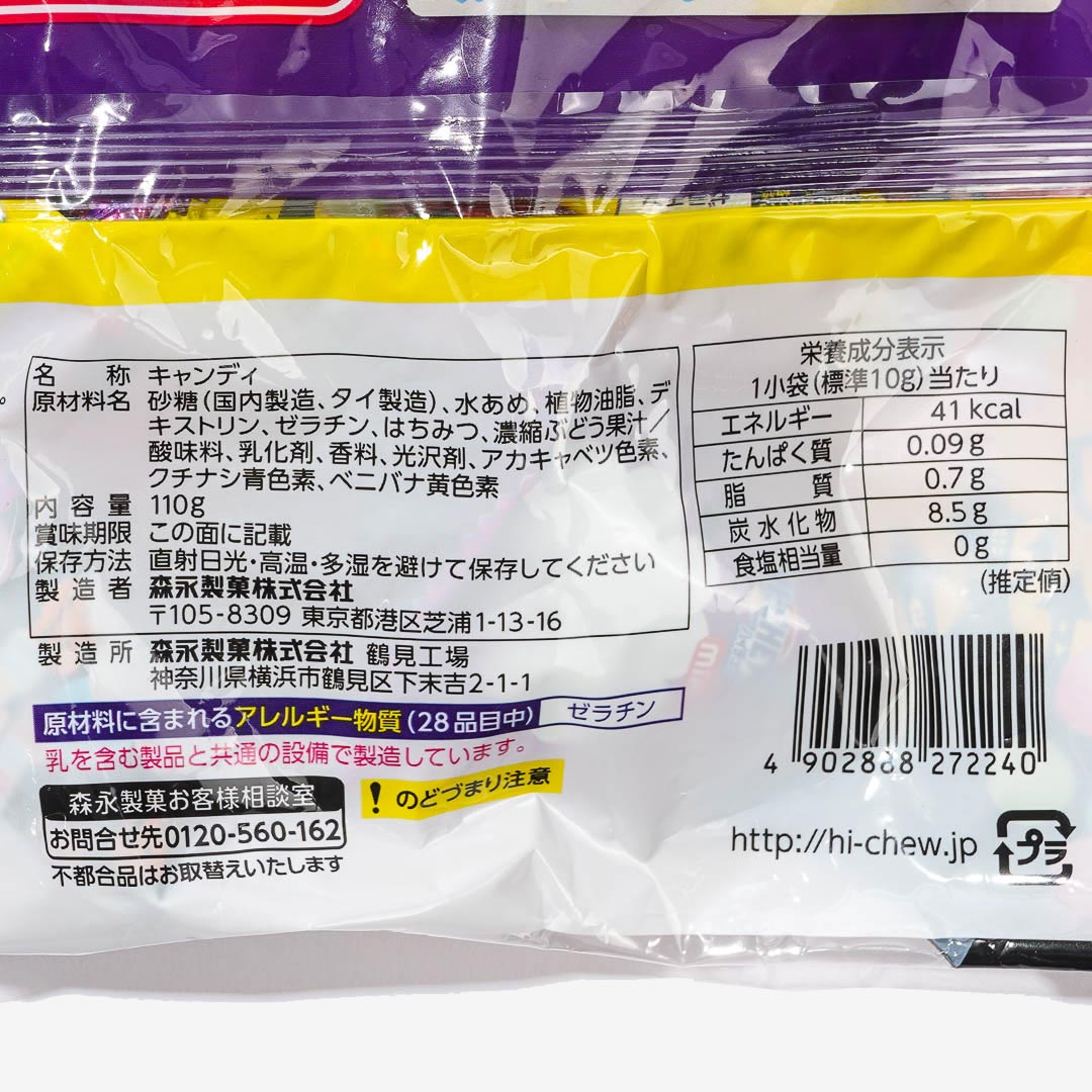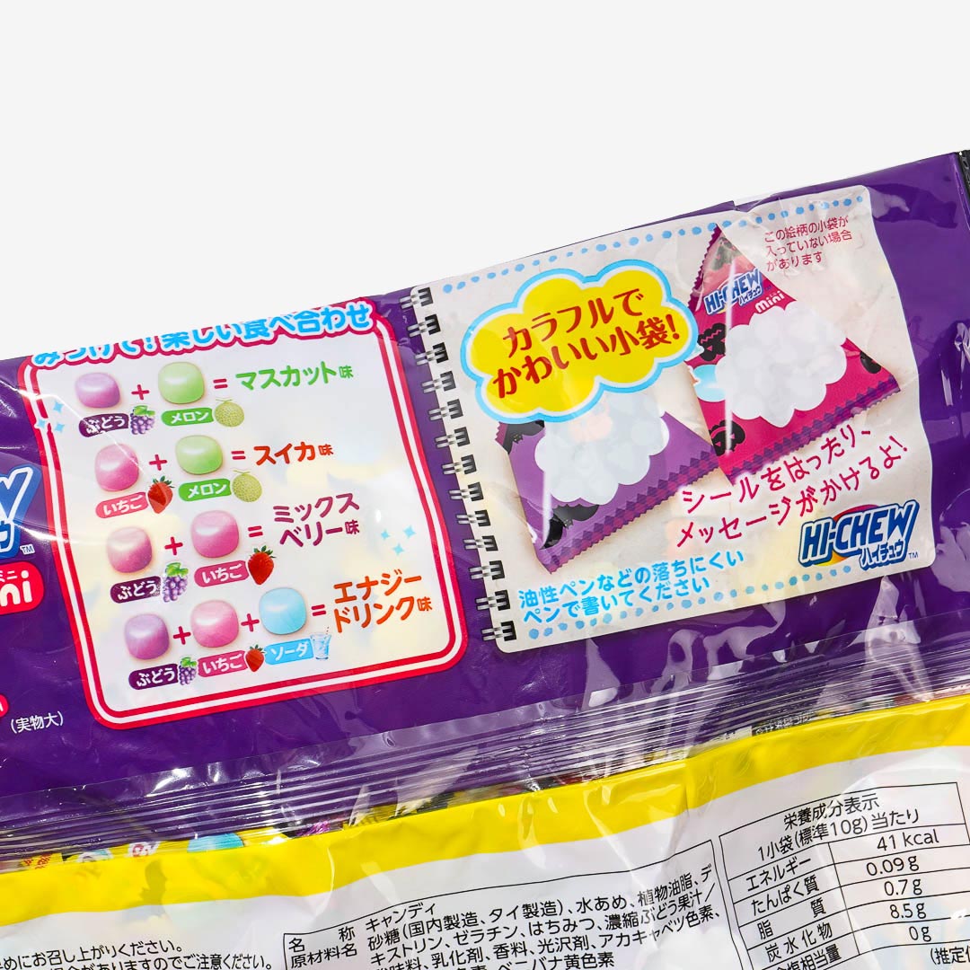 11 packs of sweet chewy candies in soda, grape, strawberry, and melon flavors