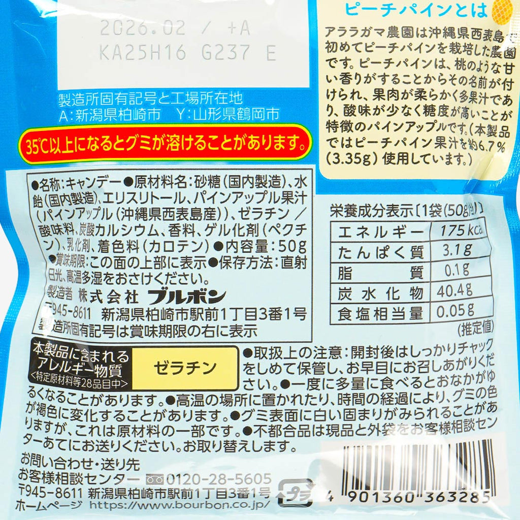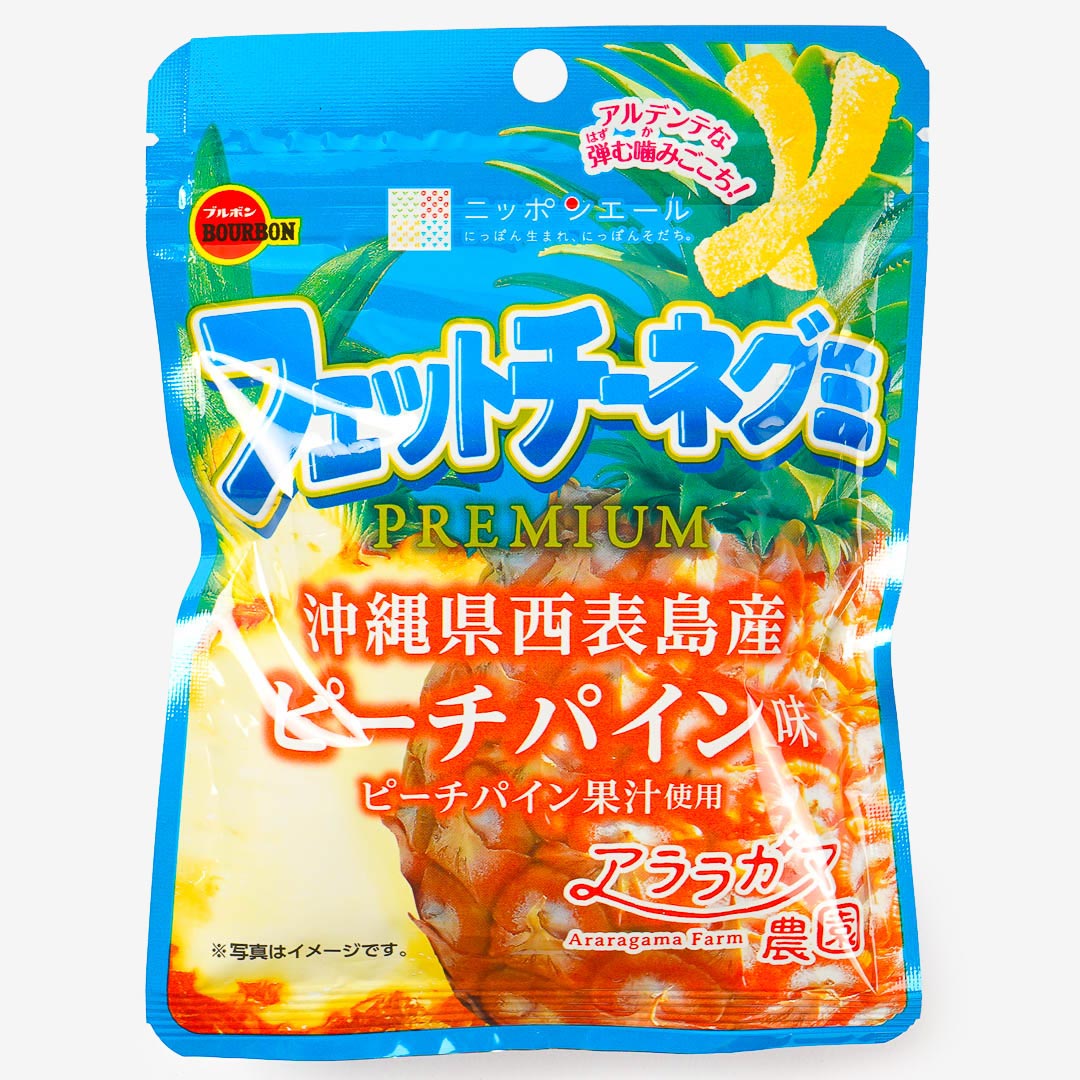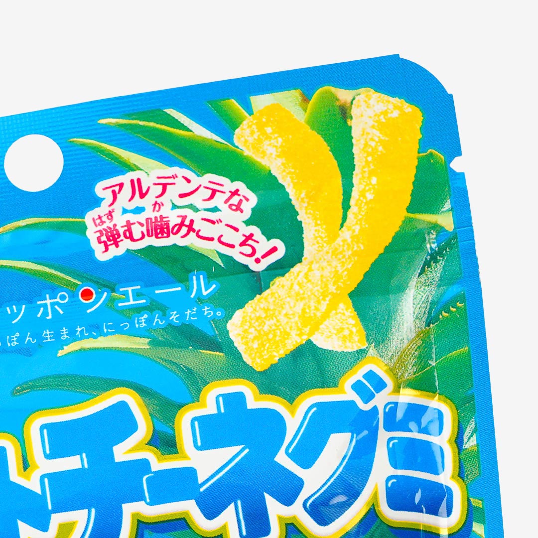 This pack of stringy gummy candy was made in collaboration with the Japanese drink company, Nippon Ale! Enjoy the tropical taste of peach pineapples from Iriomote Island in the Okinawa Prefecture. Each piece is a little bit tart and sweet.
