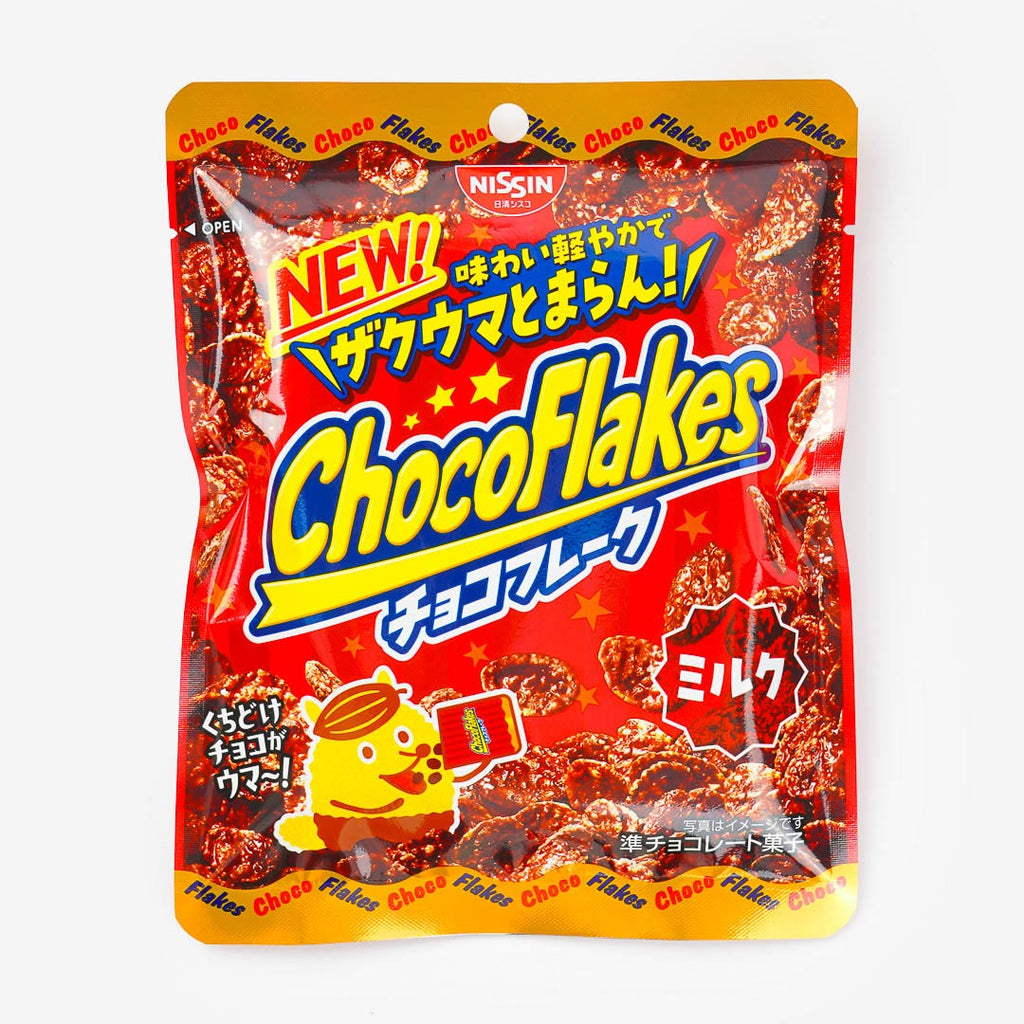 Choco Flakes cereal snacks are crunchy cornflakes coated in unique chocolate flavors. Enjoy this Japanese snack from Nissin — with or without milk!