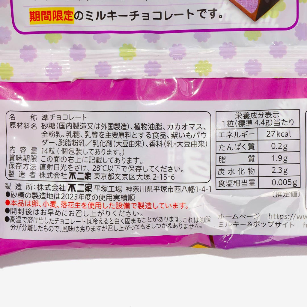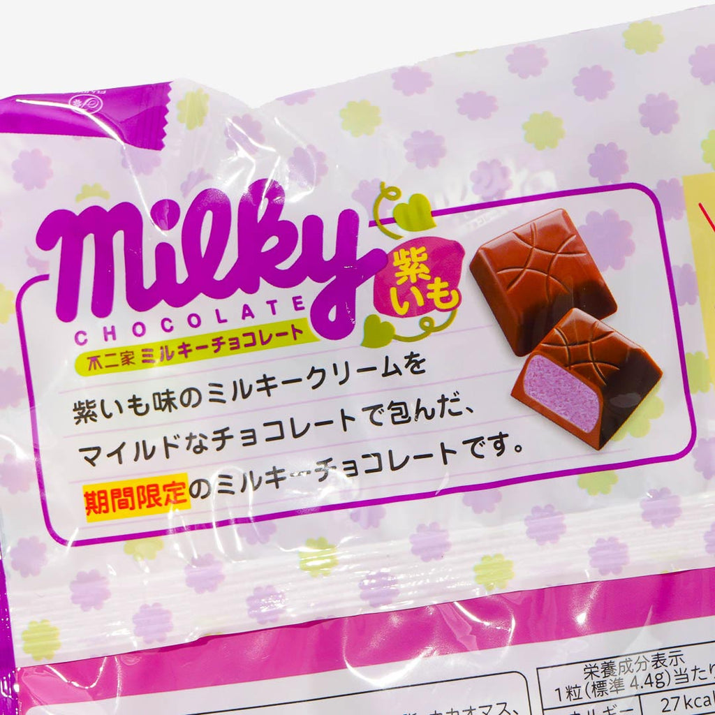 Enjoy this limited-edition chocolate treat on a cozy autumn afternoon with your friends! It combines Fujiya's classic creamy milk chocolate with the mild sweetness of purple sweet potato.
