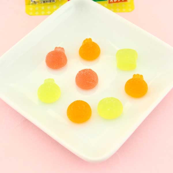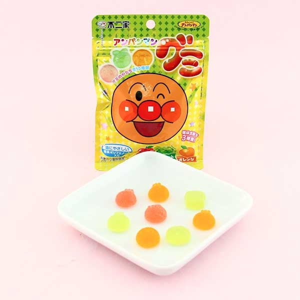 Japanese really love candies by Fujiya, and they also cherish the super famous character, Anpanman! These gummy candies are in shape of various Anpanman character faces! The candies come in 3 delicious fruit flavors: apple, grape, and orange! The texture is so cute and soft you just want to squeeze them before eating! This re-sealable bag is the perfect treat to bring with you on your adventures, and to share with your friends!