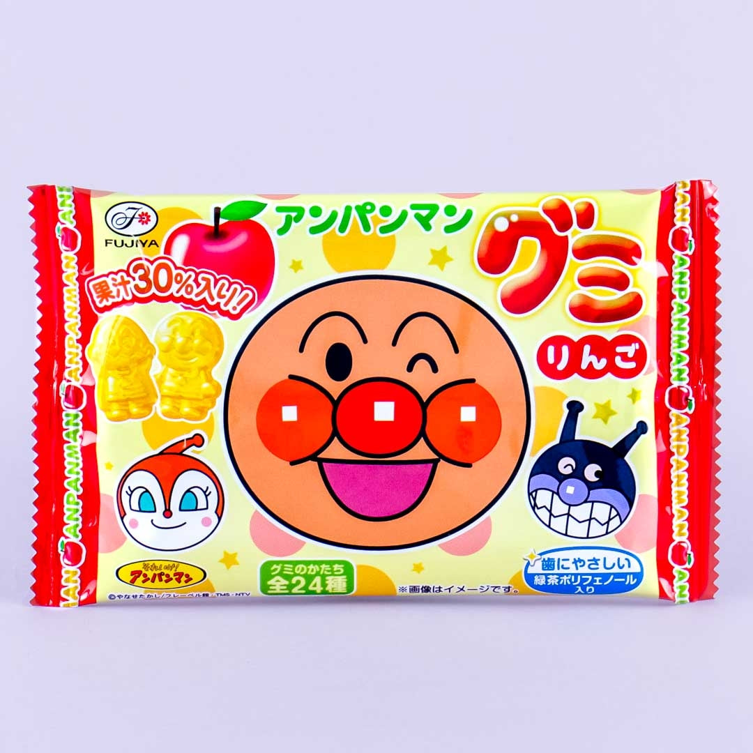 Famous Anpanman is here for the rescue! Japanese really love candies made by Fujiya and they also cherish the famous character, Anpanman! The gummies are shaped as characters of Anpanman and his friends, and taste like fresh apple juice! Each package comes with 6 pieces of candy. Made in Japan.