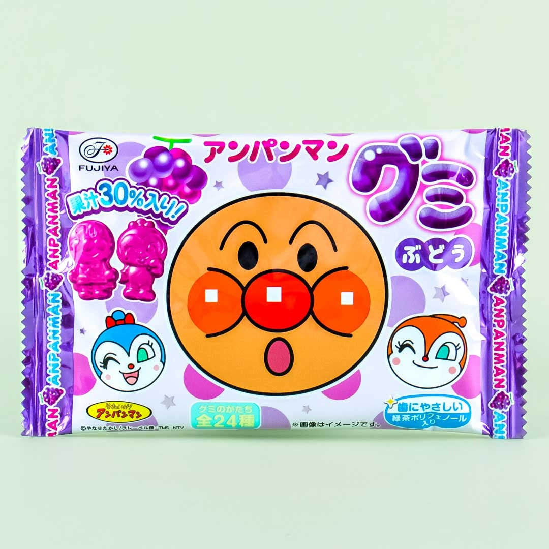 Famous Anpanman is here for the rescue! Japanese really love candies made by Fujiya and they also cherish the famous character, Anpanman! The gummies are shaped as characters of Anpanman and his friends, and taste like fresh grape juice! Each package comes with 6 pieces of candy. Made in Japan.
