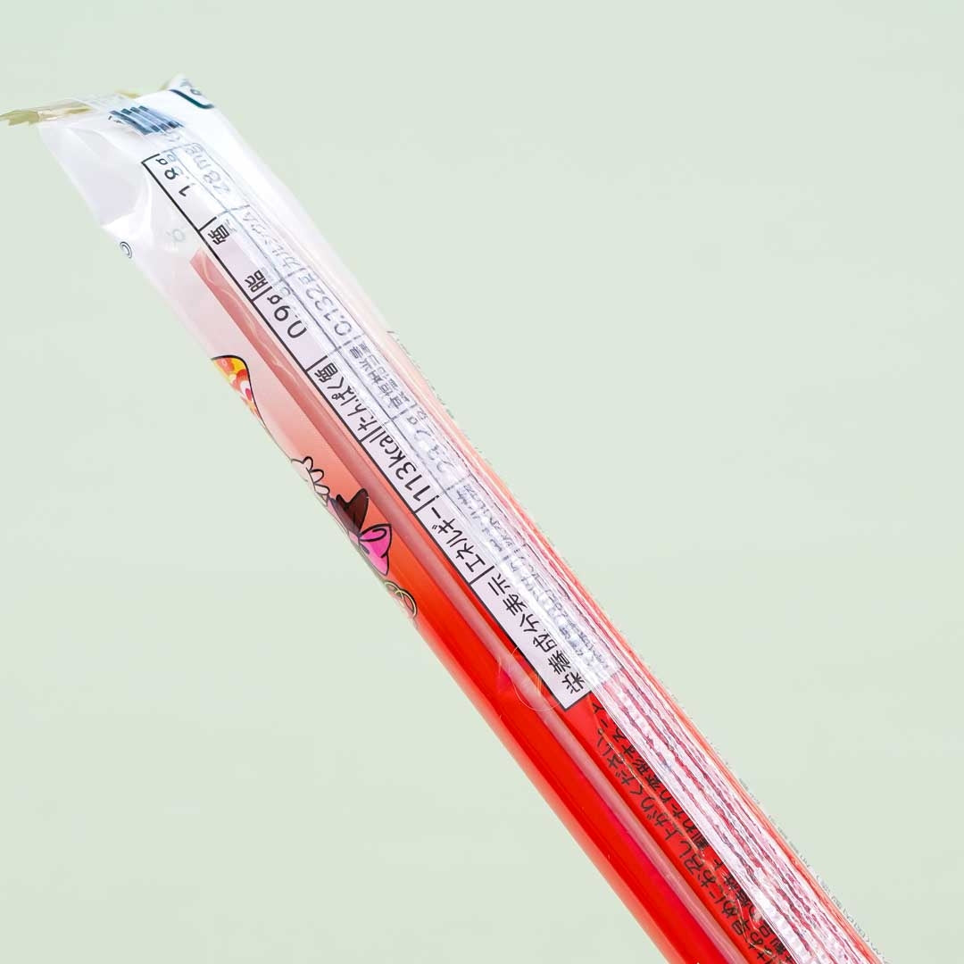 Celebrate Shichi-Go-San, a famous Japanese childrens holiday by eating this long red sweet candy stick made with condensed milk and 3% fresh cream from Hokkaido! Chitose-ame is one of the essential sweets given during this important festival to kids as a symbol of good health and longevity. The pack features Milkys mascot Peko-chan, dressed in holiday-appropriate furisode or traditional festival kimono.