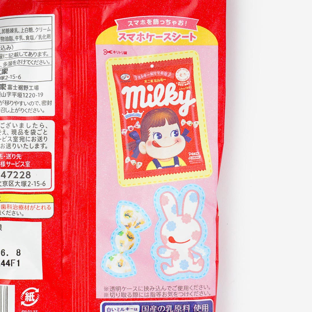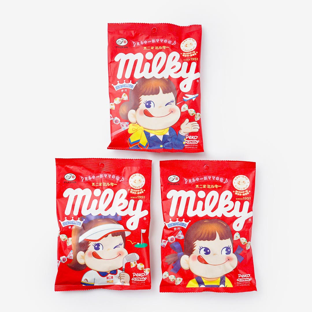 Share these sweet milk-flavored treats with your friends! Each soft candy comes individually wrapped. You’ll receive a pack with a random design featuring Peko-chan when you order!