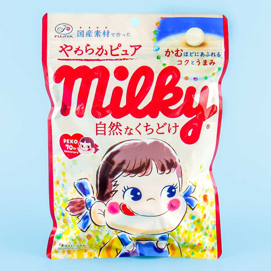 Enjoy these soft candies filled with yummy milky goodness as you bite into each chewy piece!! Its super cute packaging has a resealable bag and features the iconic brand mascot, Peko-chan.