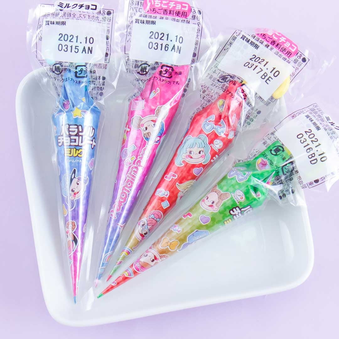 Take a bite out of this umbrella-shaped milk chocolate or strawberry chocolate treat! Its packaging is decorated with Milky candy characters like Peko-chan. Surprise yourself with a random package design and flavor when you order!