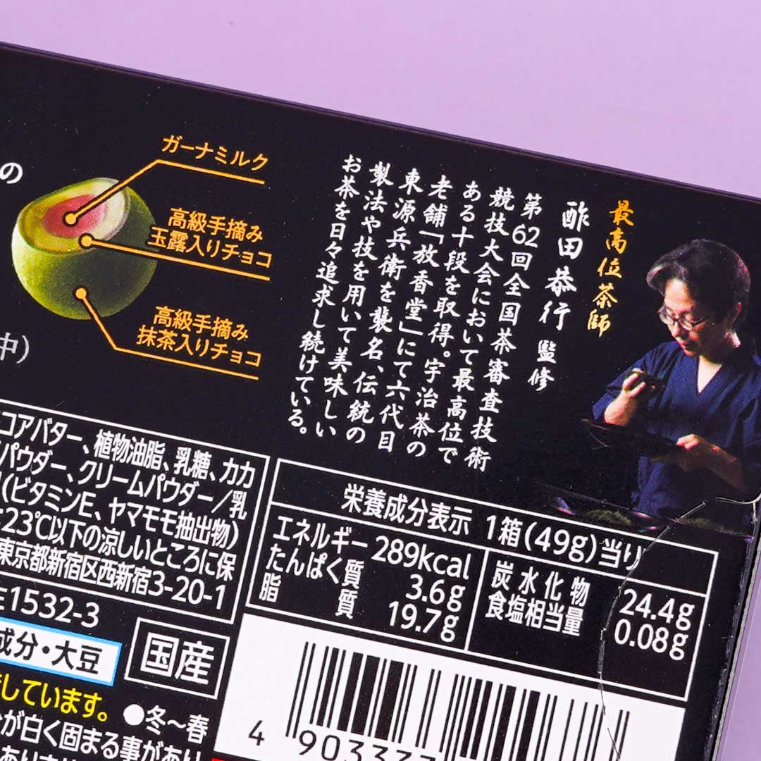 Treat yourself to this box of luxurious truffle chocolate. The production of these treats was supervised by Japanese tea master Yasuyuki Suda! Each piece has three different layers - a Ghana chocolate center, a Gyokuro tea chocolate middle, and a coating made of matcha chocolate.