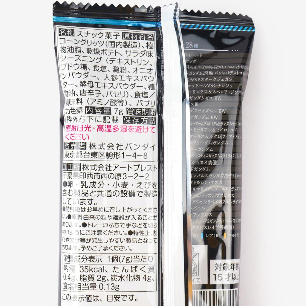Collect an epic Gundam card while snacking on a crunchy potato cracker with the second collection of this Itajaga snack! The pack includes one card chosen from 28 designs, featuring famous scenes from Gundam UC, Gundam Wing Endless Waltz, SEED Destiny, and Iron-Blooded Orphans. Enjoy the quick snack as you reveal which iconic illustration you pulled!