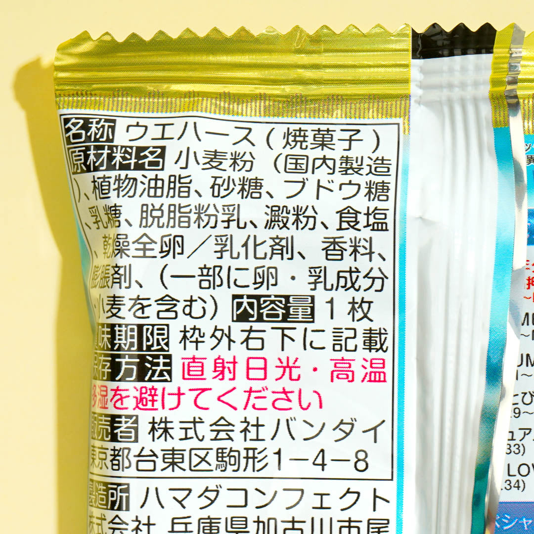 This yummy snack is the 21st edition of IDOLiSH7 wafers! It's a vanilla cream-filled wafer that comes with a free collectible card. The card has a metallic finish and features the characters from the anime and manga series IDOLiSH7.