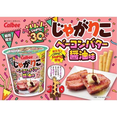 This limited-edition pack of potato sticks is especially created for Calbee's 30th anniversary! It has a juicy bacon flavor combined with fragrant soy sauce and rich butter. Enjoy it anytime in its handy container!