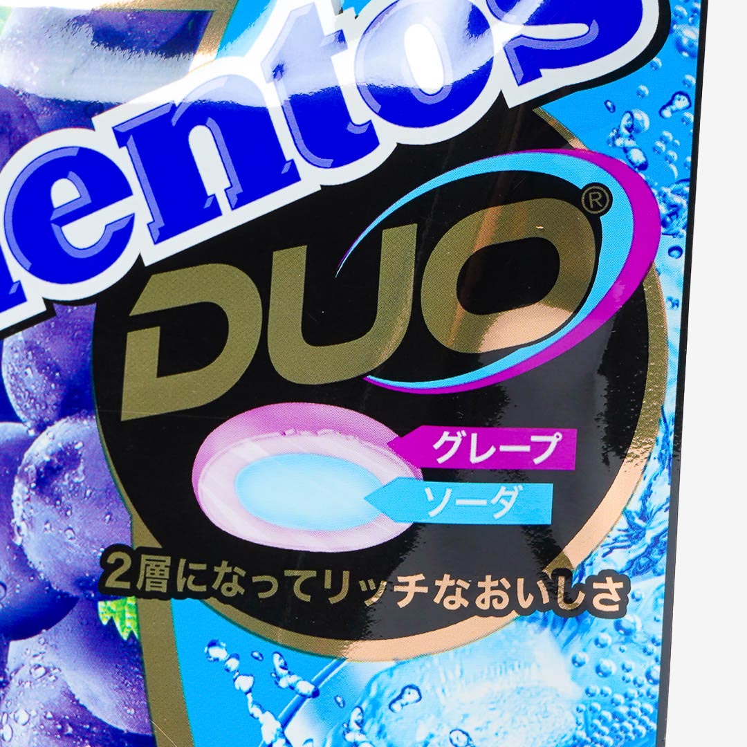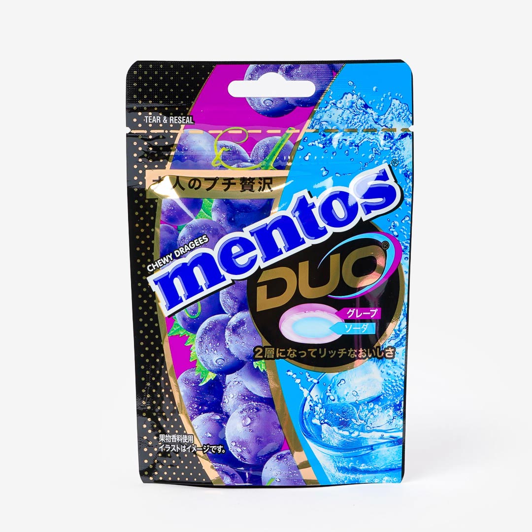 A resealable pack of candy with a grape-flavored sugar shell and a soft soda-flavored inner part