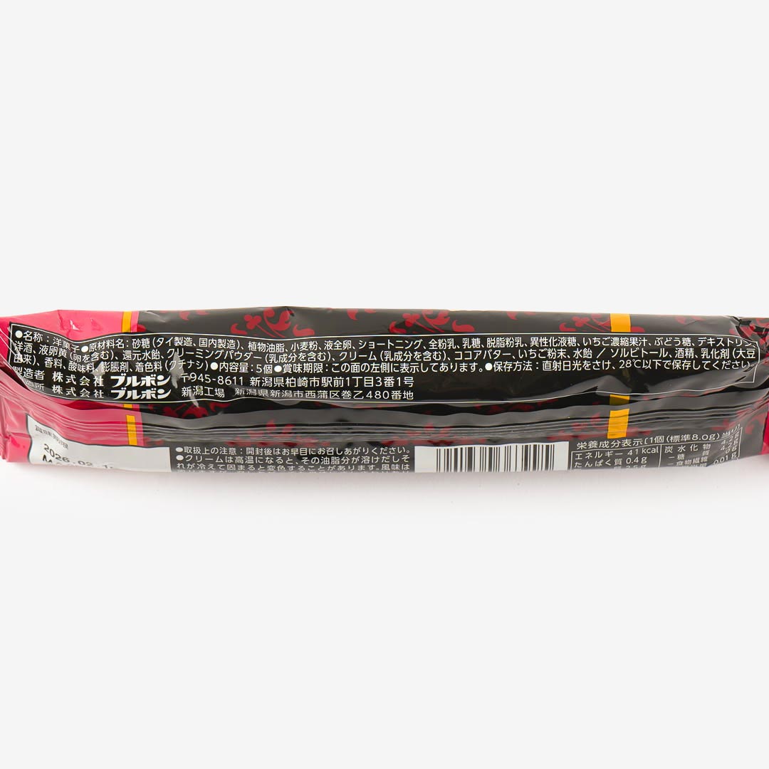 Give in to your sweet cravings with this bite-sized cake snack! Moist vanilla cake is filled with delicious cream made with Amaou strawberries. It's also coated with mildly sweet white cream to complete the strawberry shortcake taste.