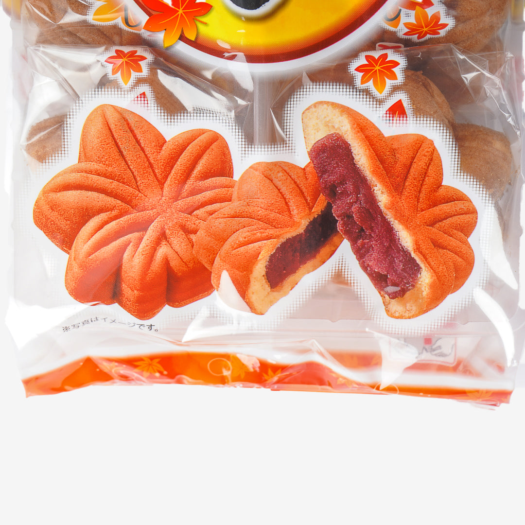 Manju is a traditional Japanese cake bun filled with sweet bean paste. This pack of manju is shaped just like momiji leaves! Enjoy it with your favorite cup of coffee or tea.
