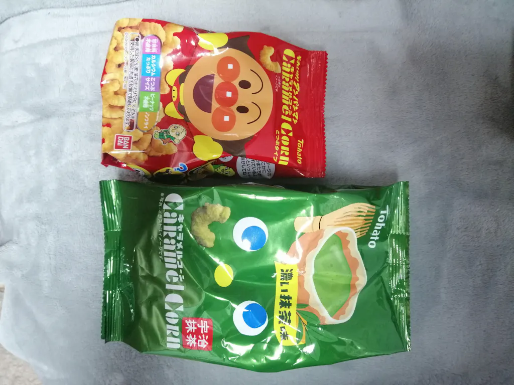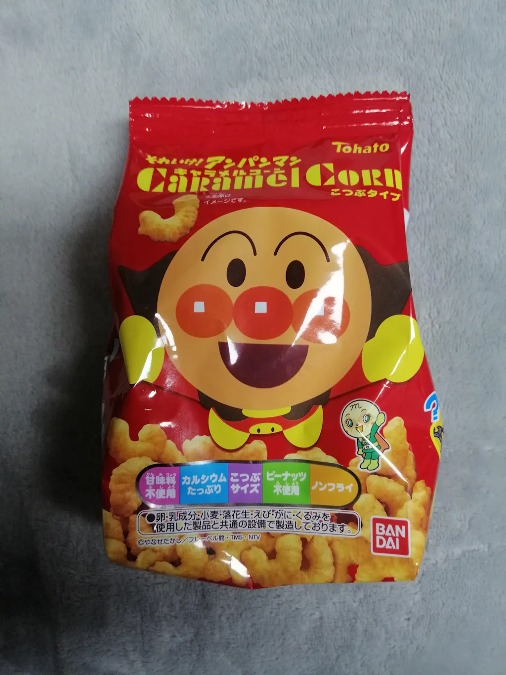This light and crispy salty caramel snack features the popular Anpanman on its packaging! It's a non-fried corn snack that contains calcium and is sweetener-free, making it great for children.