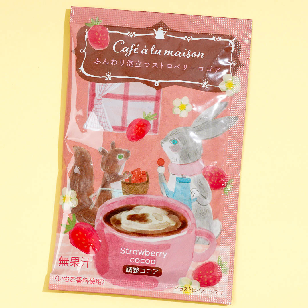 Make your own delicious strawberry cocoa with this powdered drink sachet! It mixes together the taste of cocoa, cafe late, and strawberry. Just put the powder into a cup and then pour in hot water.