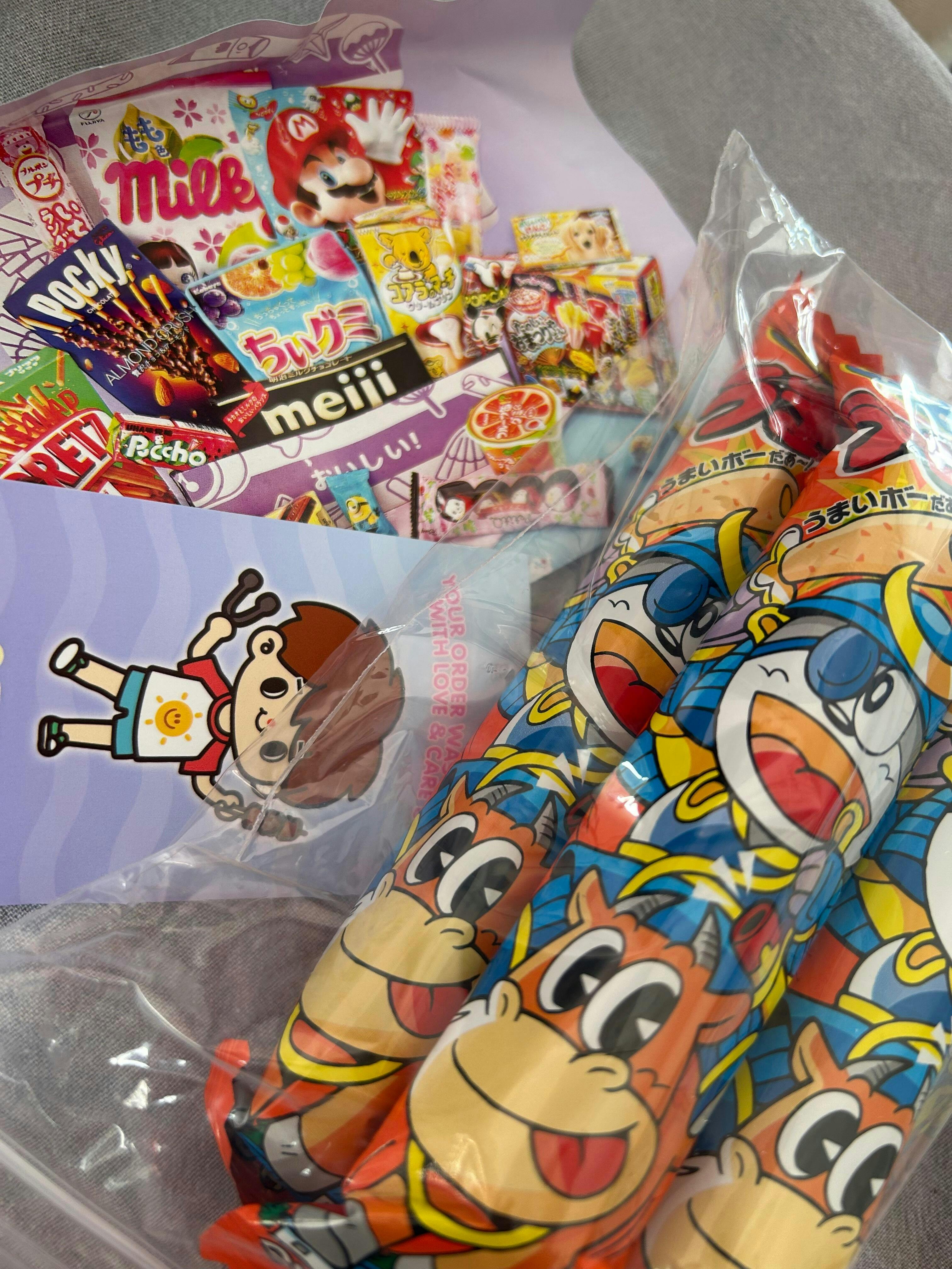 Just got mine Snack Rescue Box and what a joy! Great candys and snacks! Pocky, UHA gummys, Sapporo Ichiban Ramen Noodles snack, Senbei, Baby Star Yakisoba Noodle snack, Kit Kat and more! Love it!
