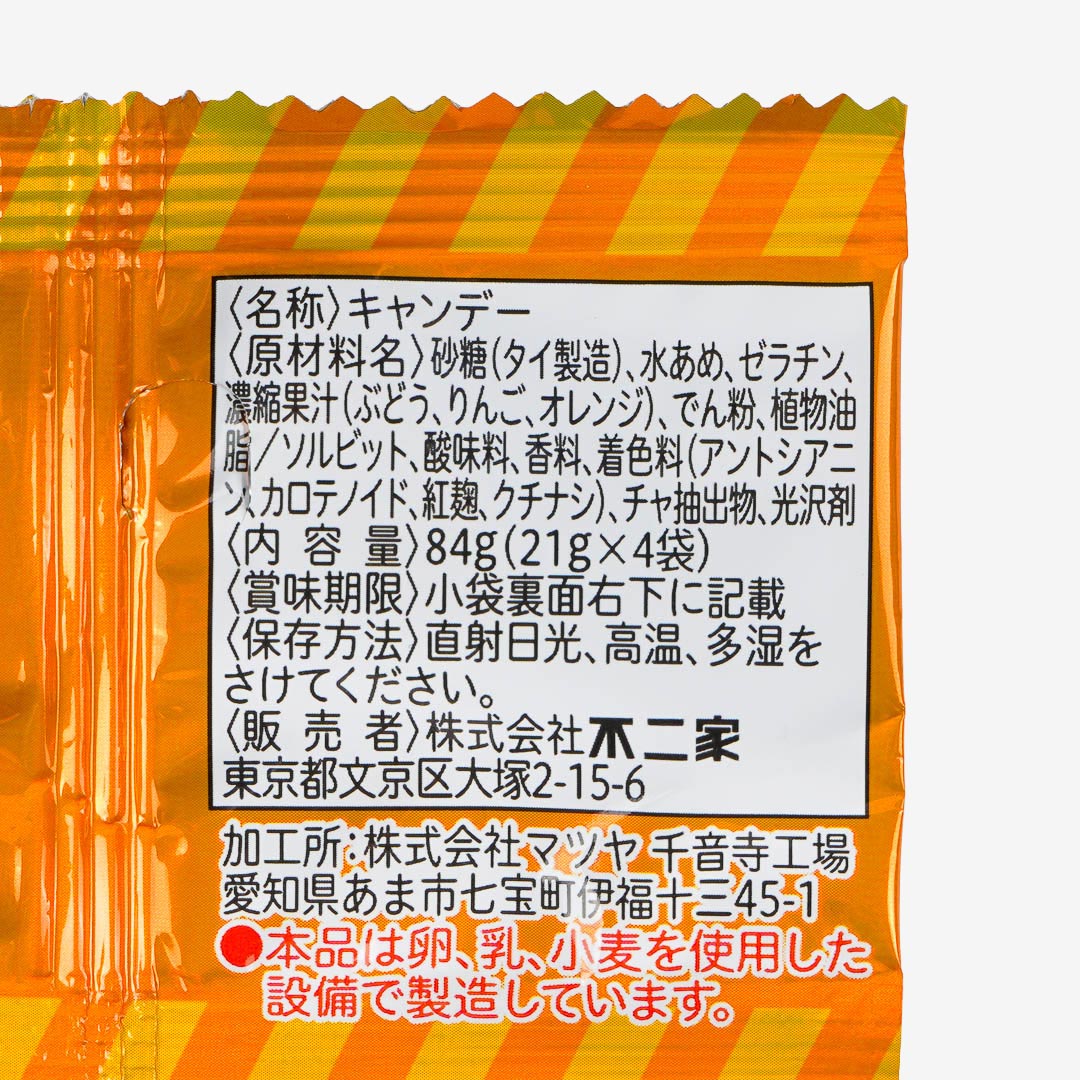 Anpanman is here for the rescue! Anpanman is one of the most popular anime series among children in Japan. This set includes four small packages full of tasty gummies, shaped as the heads of the characters of Anpanman and his friends. These candies are made by Fujiya, one of the candy manufacturers loved by the Japanese. The set has three different fresh tastes: orange, grape, and apple! So sweet!