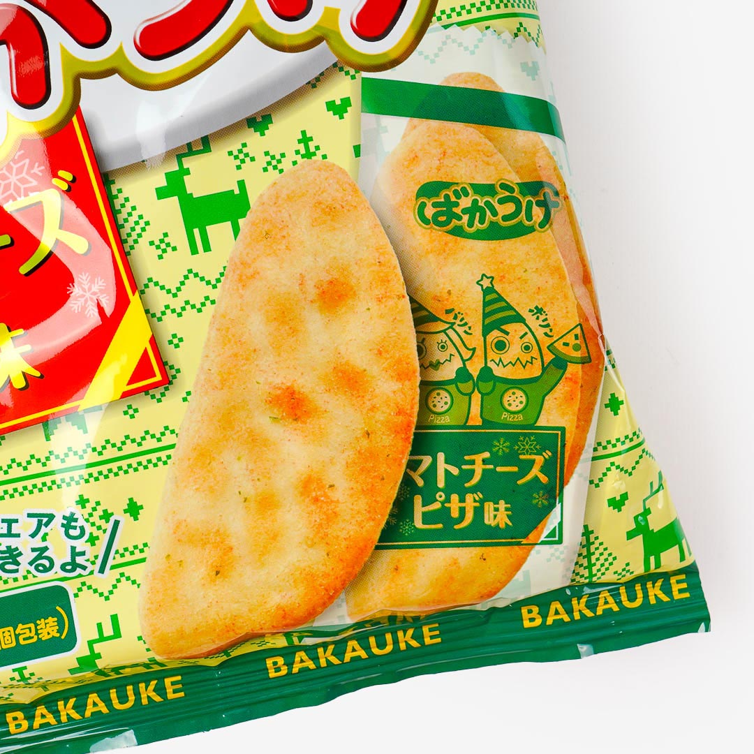 Enjoy this limited edition senbei during your next movie night! Each crunchy rice cracker is coated in a savory mix of tomato, cheese, and herbs for a pizza-style flavor.