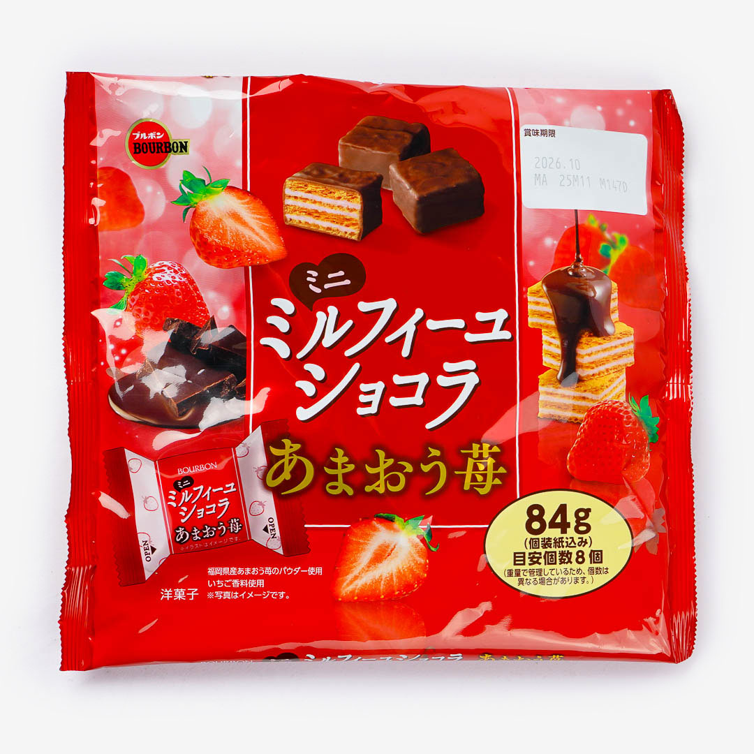 Bourbon Mini Millefeuille Chocolate Snack - Amaou Strawberry