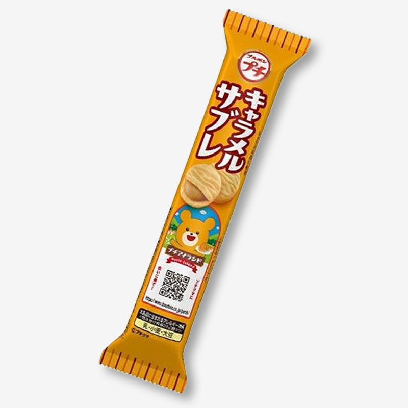 These bite-sized cookies are perfect for snacking on the go! Each crunchy piece is filled with rich caramel and butter cream.