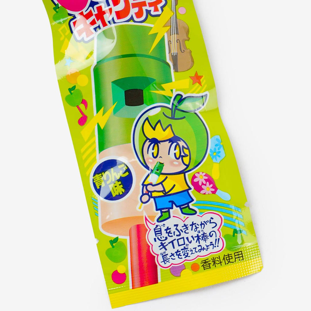 Blow on this lollipop while you're eating it and it will make a sound, just like a whistle! It tastes like green apple.