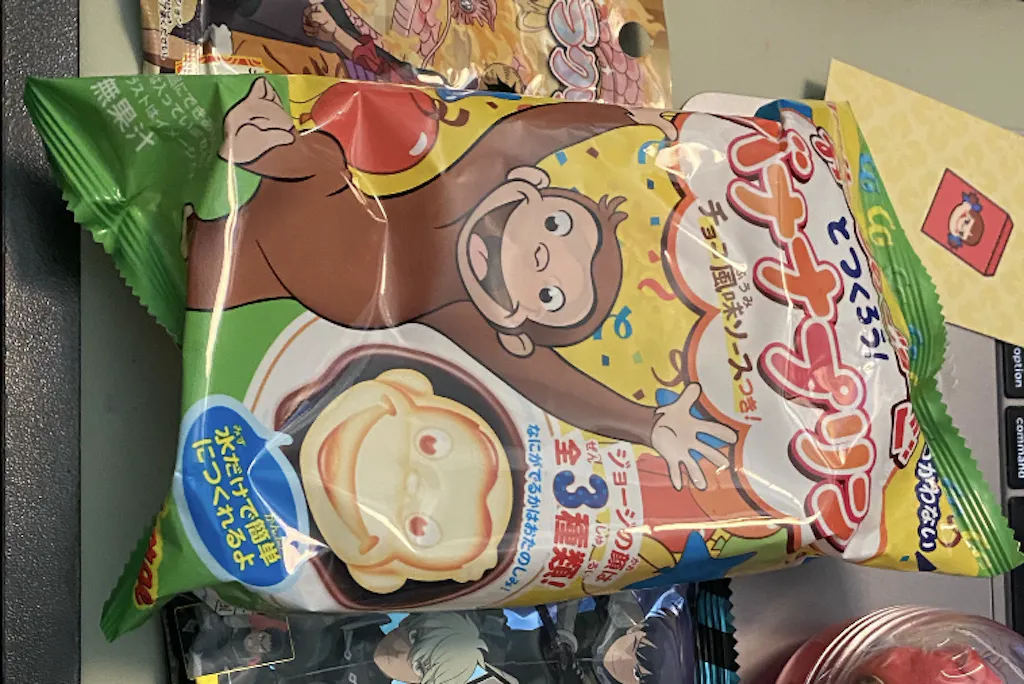 Enjoy a tasty treat while you play with this DIY pudding kit. Just add water to the banana pudding-flavored powder and watch as an illustration of Curious George! the monkey's face takes shape.