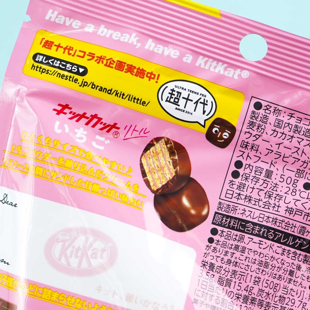 A pack of bite-sized, strawberry chocolate-coated wafer treats