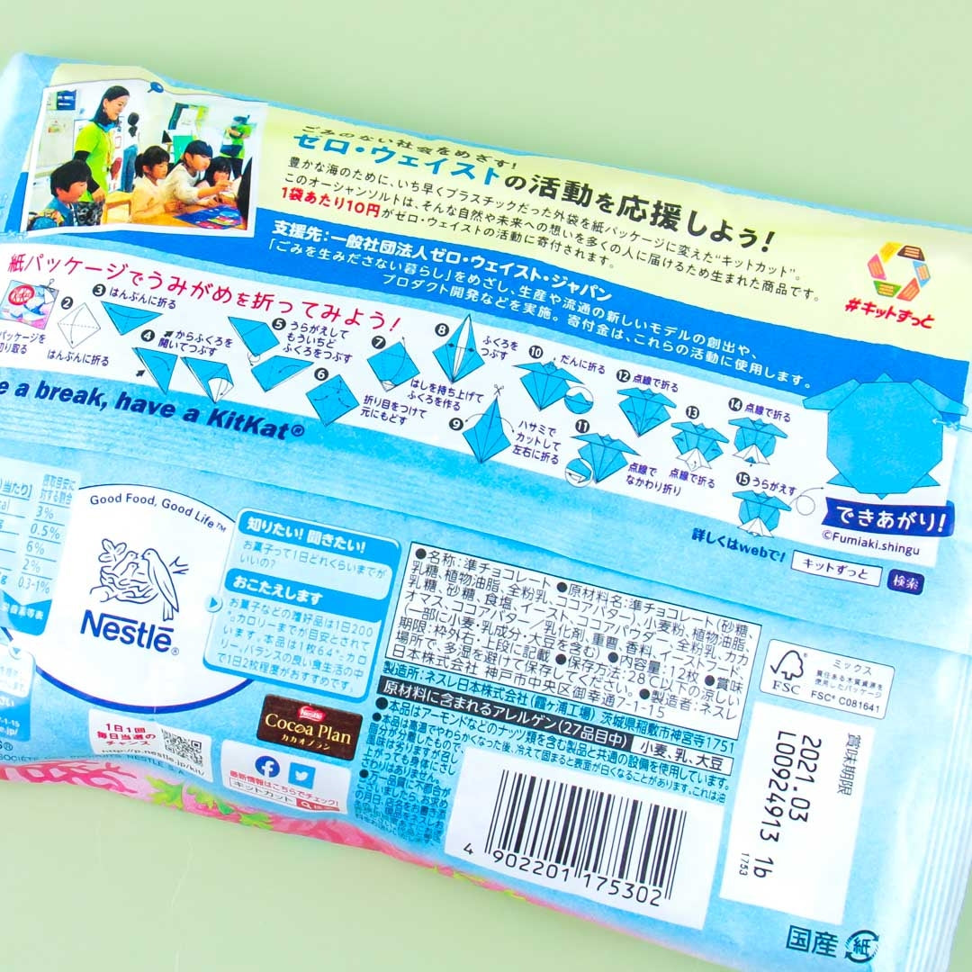 Taste the unique combination of white chocolate and sea salt from the Seto Inland Sea when you bite into these individually-sealed wafer bars. This Japan-exclusive treat comes in a special paper packaging that features a Manta Ray and can be formed into a sea turtle origami after use!