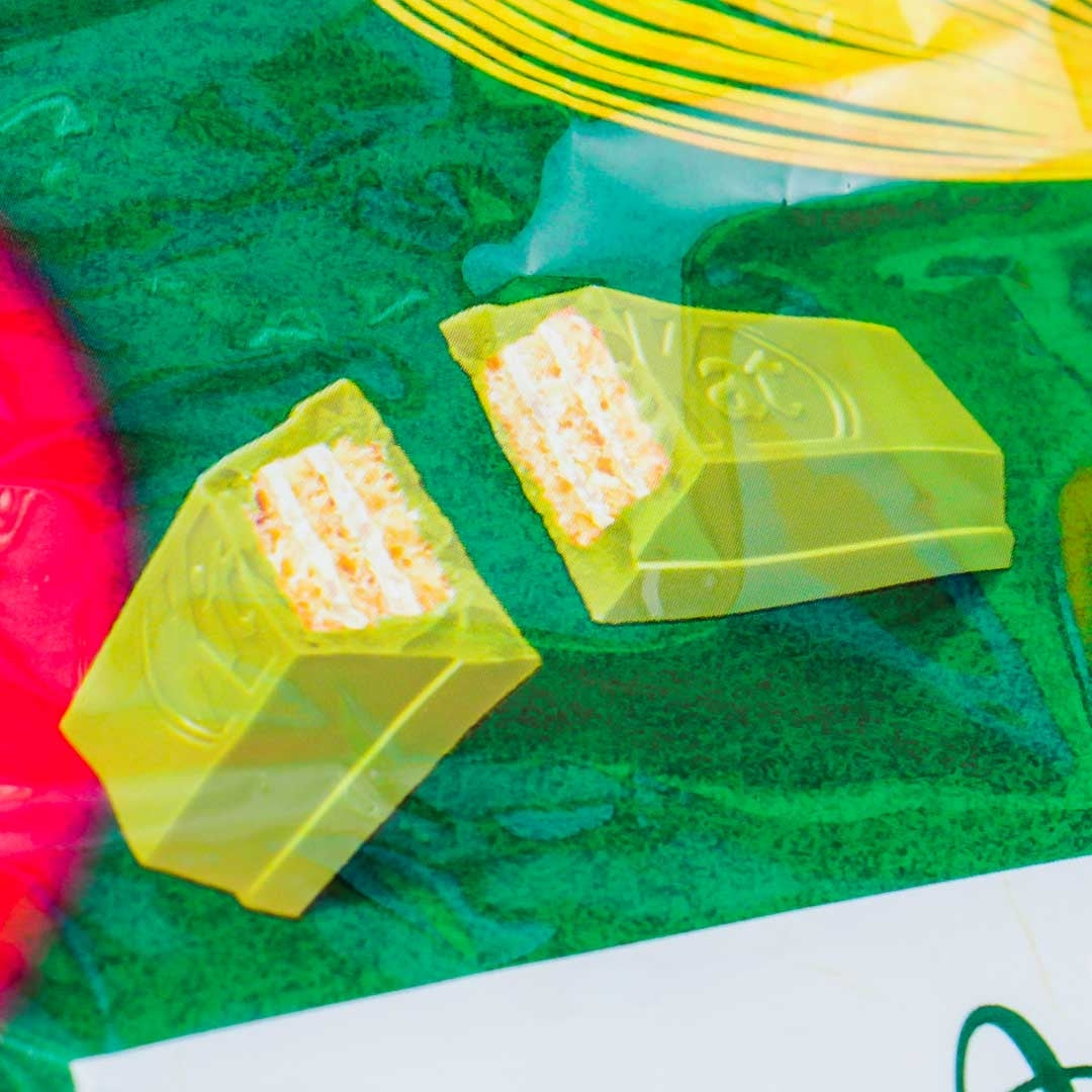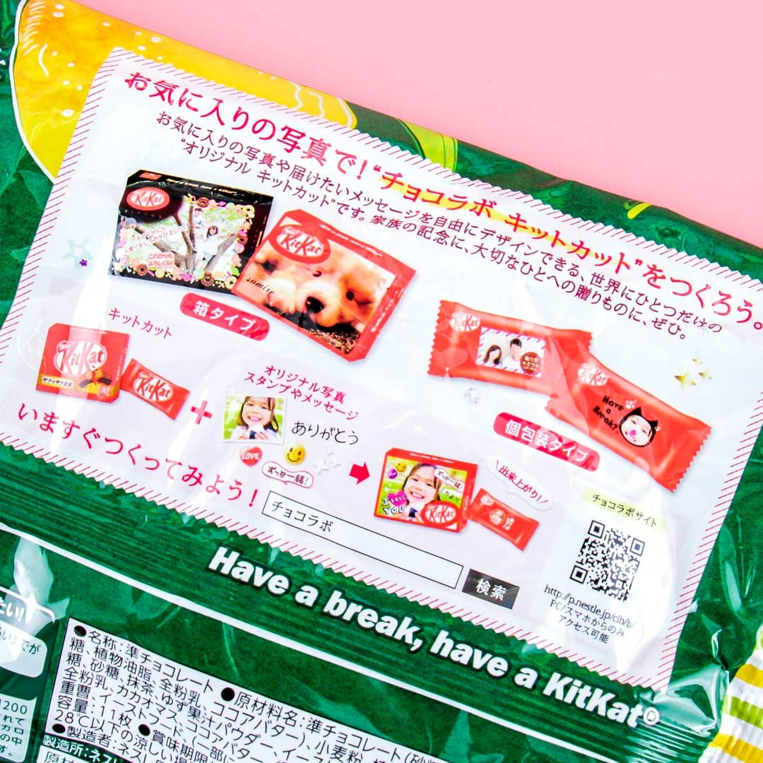 Bite into these mini choco wafer bars that come in individually wrapped packs! Each crunchy piece is covered in chocolate flavored with yuzu or Japanese citrus and bitter matcha tea.