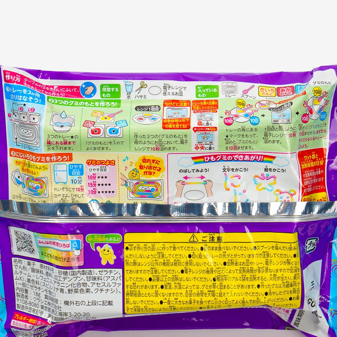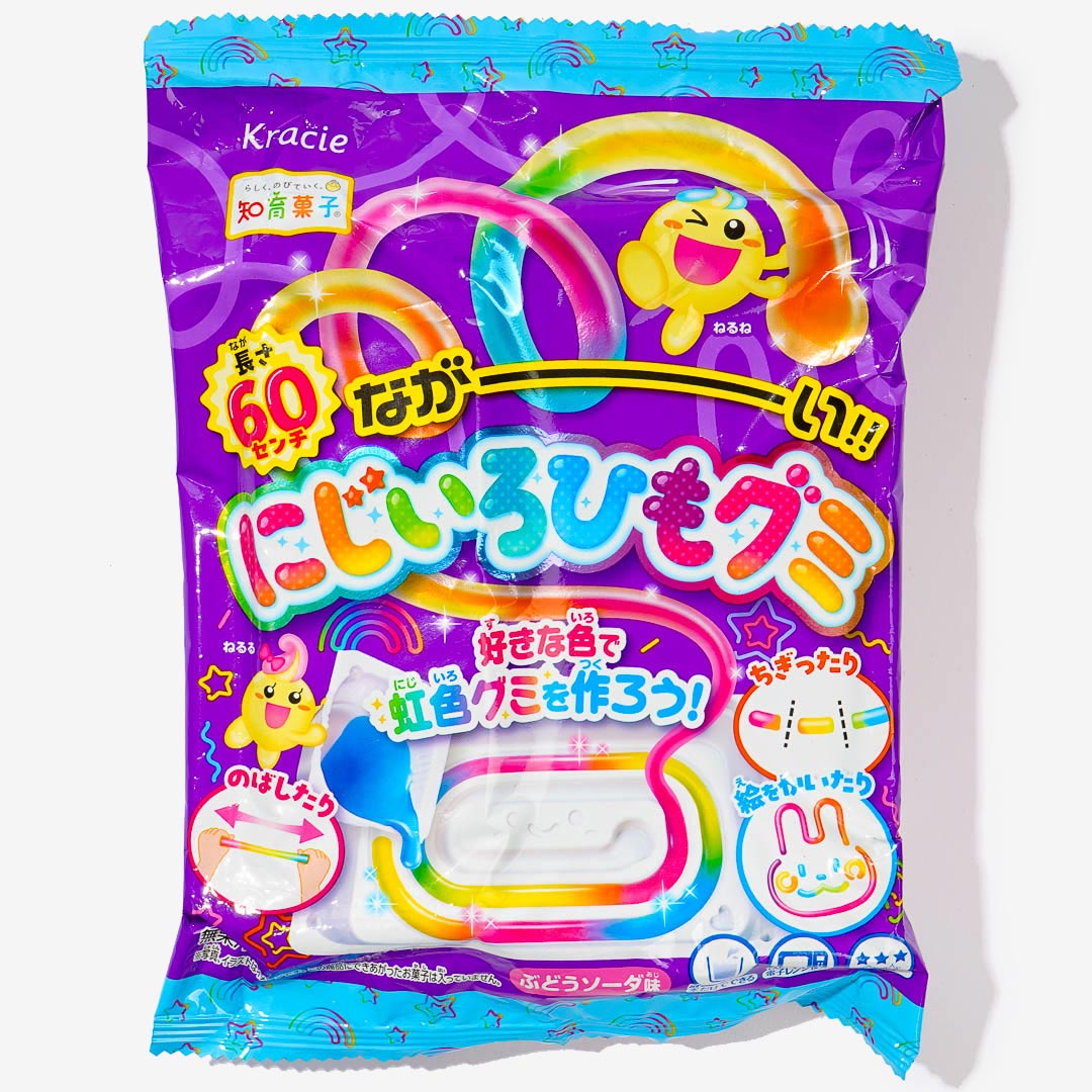 Have fun creating a super long gummy candy with this DIY kit! It's a colorful, chewy treat that tastes like fruity rainbow flavors. Just mix the candy powders with water and pour the liquid on the tray. You can enjoy it as is or form different shapes before eating!