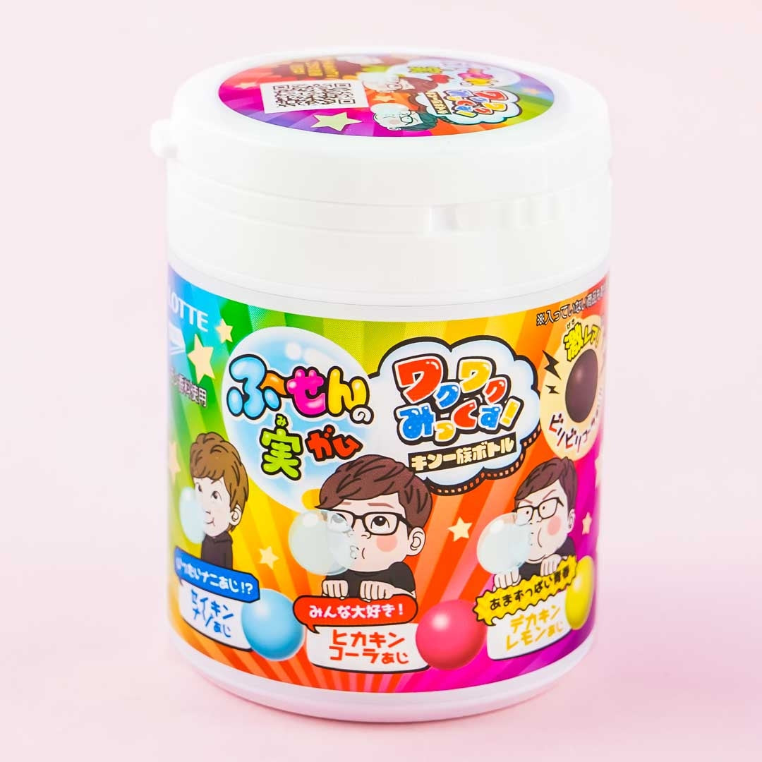 • A bottle of cola, lemon, and mystery-flavored gumballs