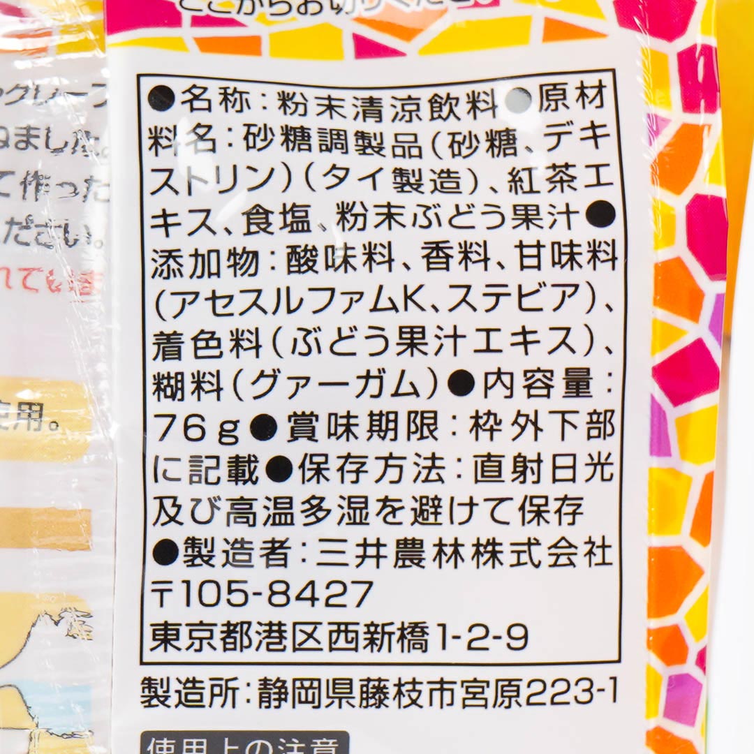 Make refreshing sangria fruit tea with this pack of juice powder. It's made with Kyoho grape juice, orange, and grapefruit! All you have to do is dissolve the powder in regular water or hot water to enjoy.