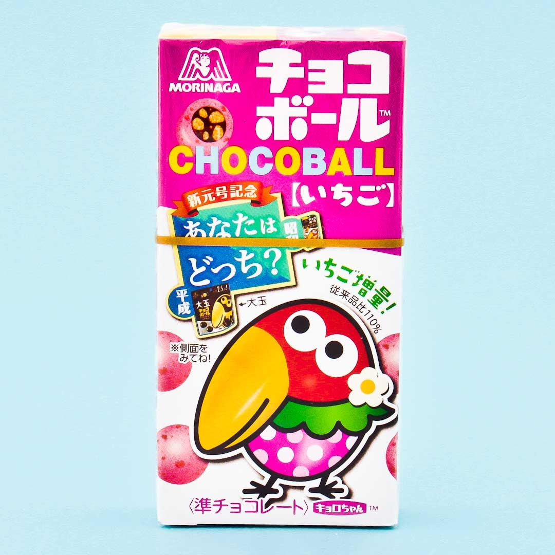 These round snacks are coated with strawberry chocolate and have crunchy, cocoa-flavored cookie centers. The beak-shaped opening of the box is also inspired by the Chocoball mascot Kyoro-chan! Pour some out from his beak when you want a sweet chocolatey treat.