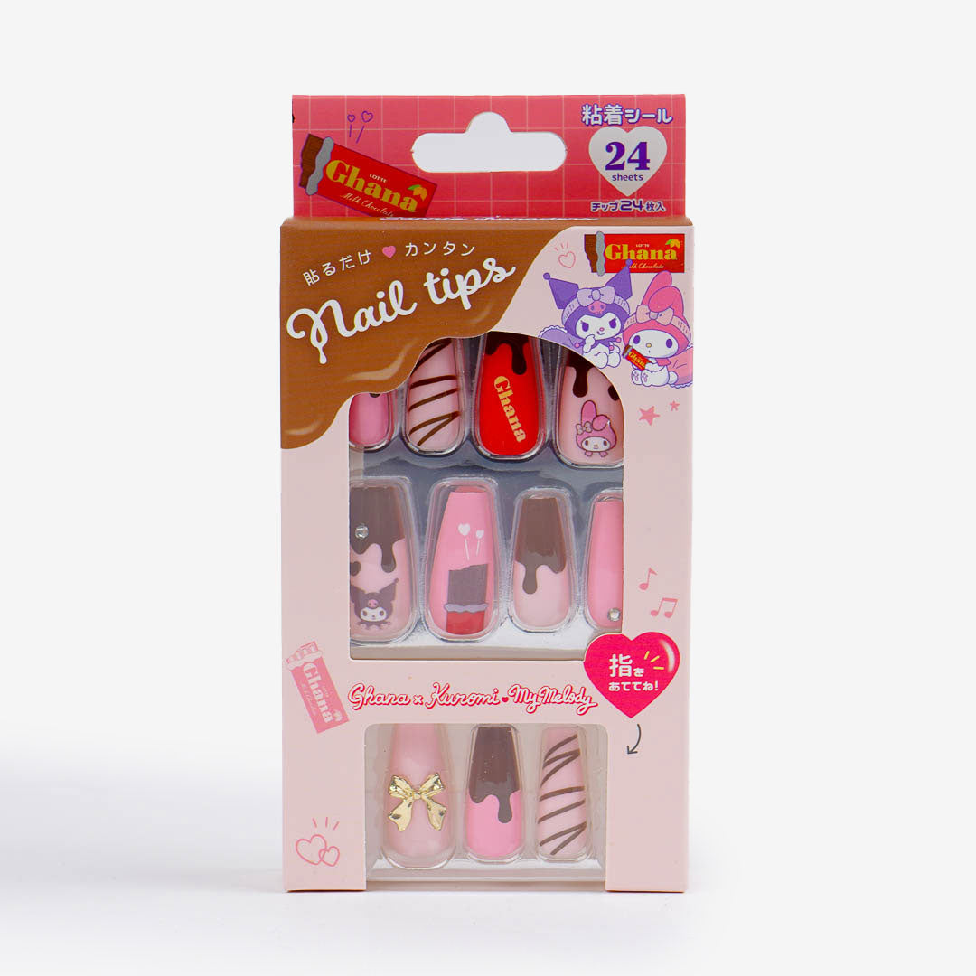 Transform your fingertips into a kawaii masterpiece with My Melody and Kuromi Ghana Nail Tips! This set comes with press-on nails, adhesive tapes, and a tiny nail file that helps you go from plain topretty and playfulin minutes. Whether you’re showing off at school, snapping selfies, or topping off your pastel aesthetic look, these character nails add major kawaii vibes!