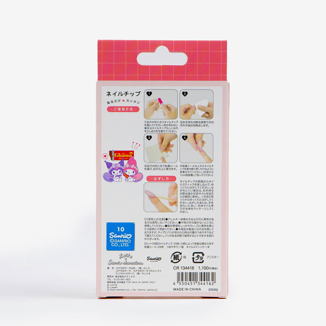 Includes 24 Sanrio-themed press-on nail tips featuring Kuromi & My Melody artwork