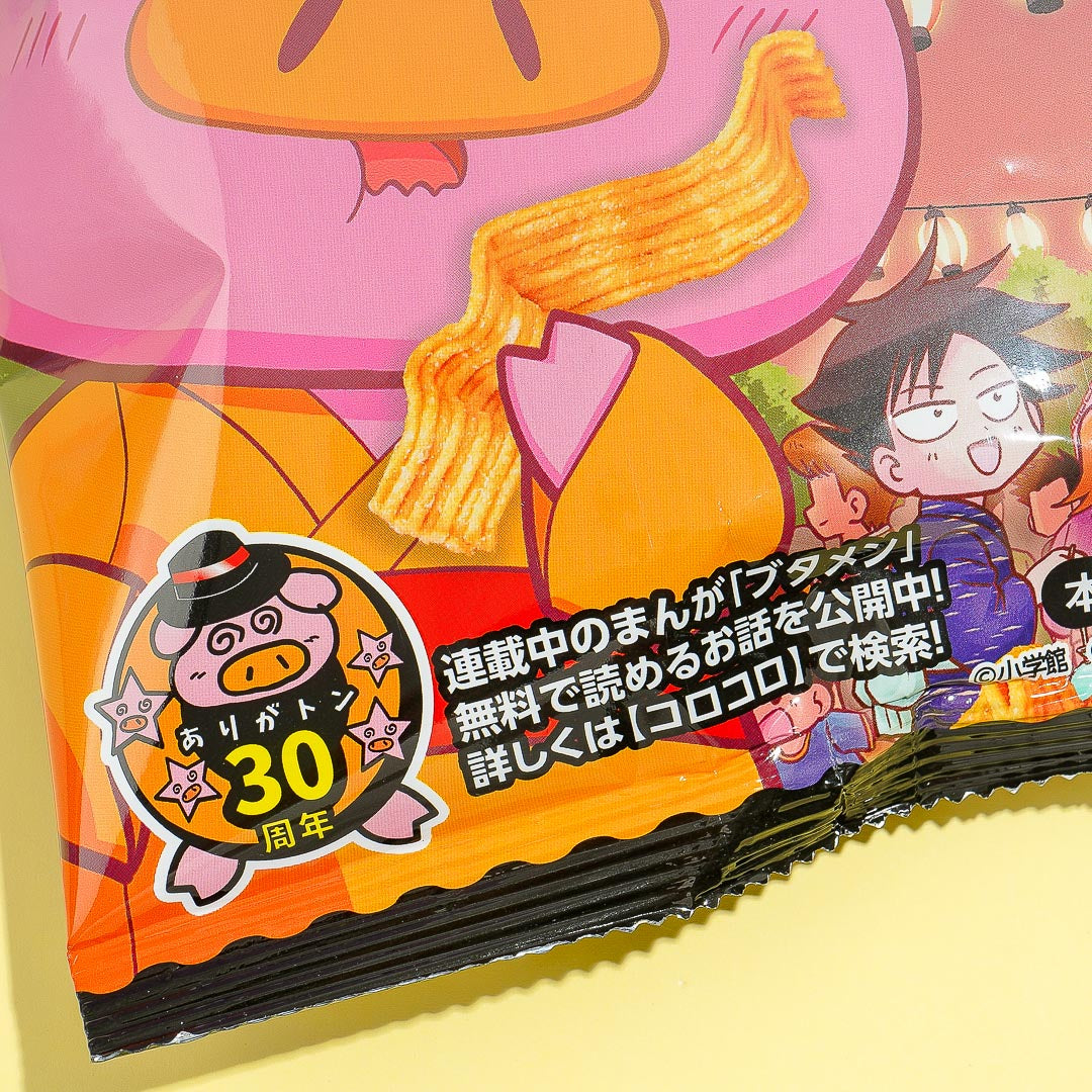 Put this pack of thick noodle snacks in your snack box! This pack of yummy tonkotsu-flavored goodies comes from a collaboration between Butamen and CoroCoro Comics. It was made in celebration of Butamen's 30th anniversary.