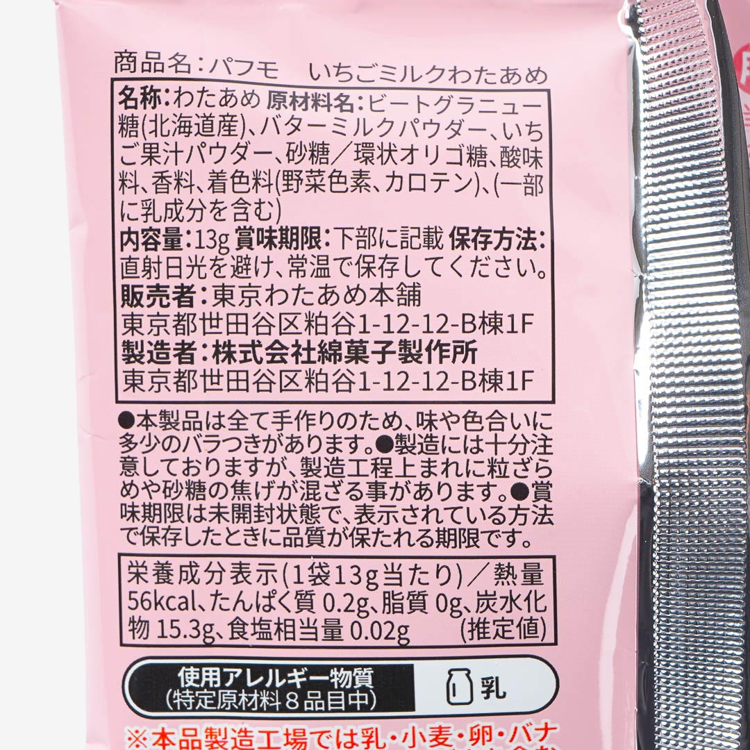 Enjoy this fluffy strawberry milk cotton candy whenever you want a light and sweet treat. It’s made with real Japanese strawberry juice and is formulated with cyclic oligosaccharides that are good for your digestion!