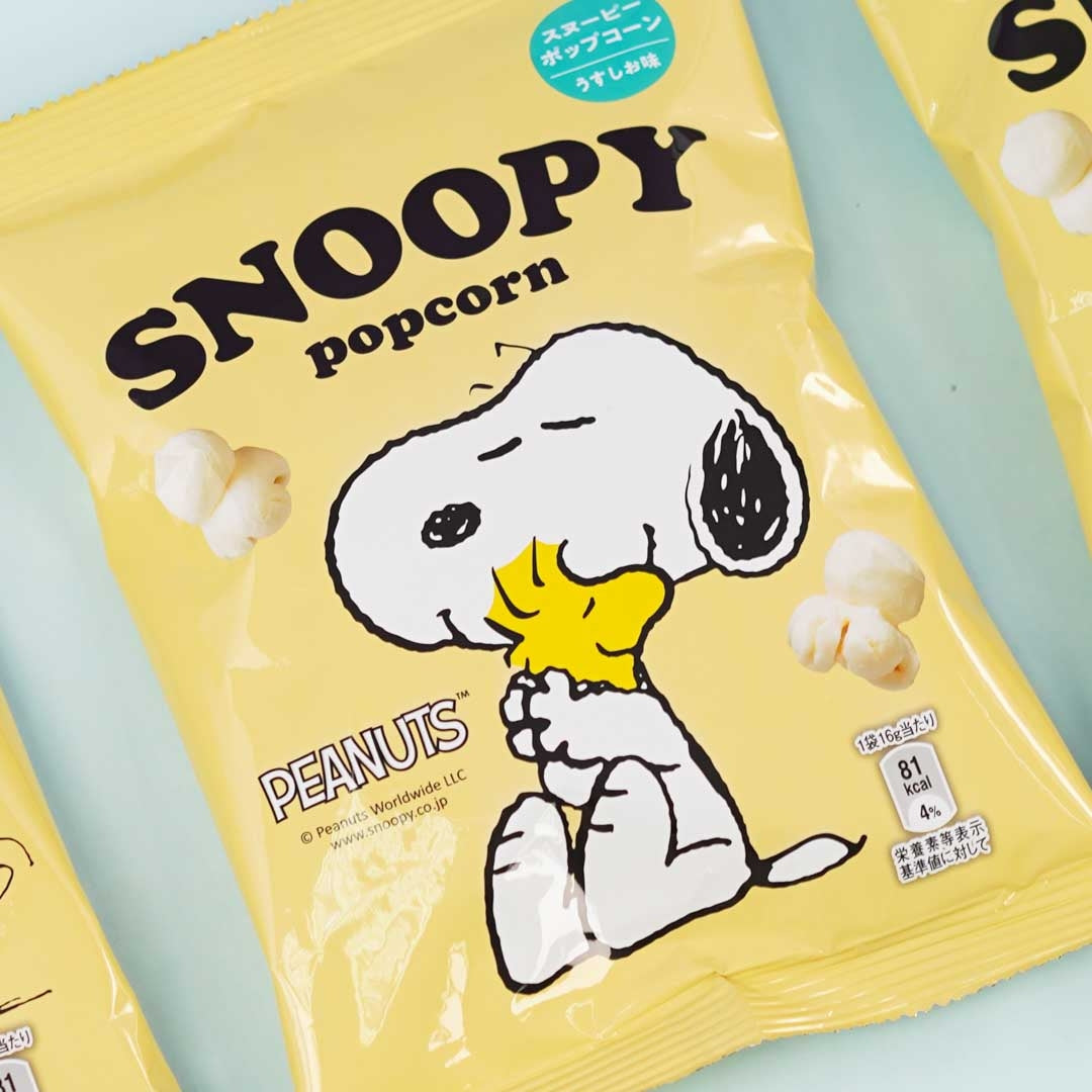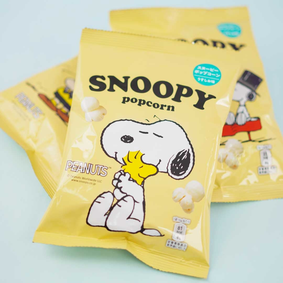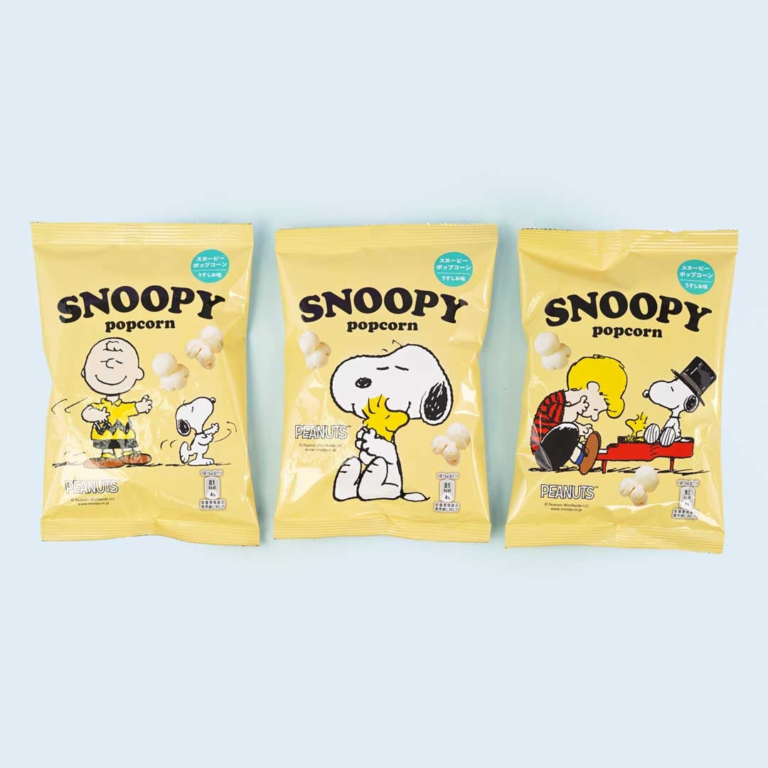 This pack of light-tasting popcorn features a print of Snoopy! You'll receive a random design from a set of 3 when you order.
