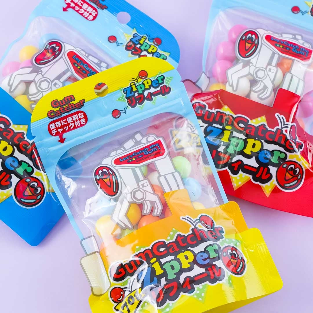 Chew on this pack of gumballs featuring prints of a crane machine! These gumballs are super colorful. Make sure you keep the resealable bag closed so these treats stay nice and fresh. Surprise yourself with a random package design when you order.